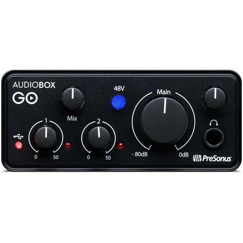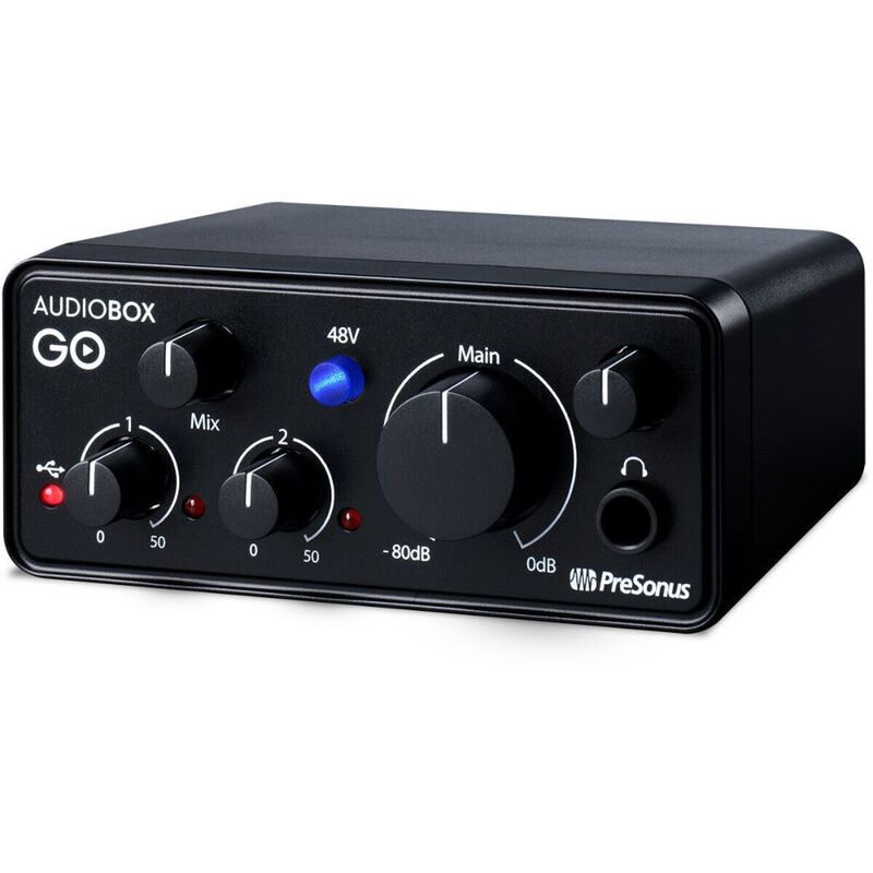 Grab and Go! With the PreSonus AudioBox GO, you can record wherever sound takes you. Track some acoustic guitar down by the lake, or lay down some soaring vocals in that super-reverberant stairwell in your friend's apartment building. Or collect some gritty samples for your next beat down at the subway terminal. AudioBox GO will get you out of the house and make recording the adventure that it should be.