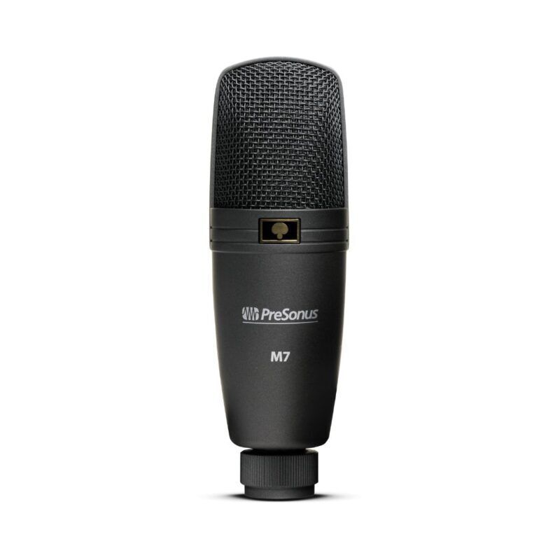 PreSonus M7 Microphone & Mic Accessories: Versatile cardioid condenser microphone with built-in windscreen plus mic stand adapter, 10-foot XLR cable, and mic pouch.