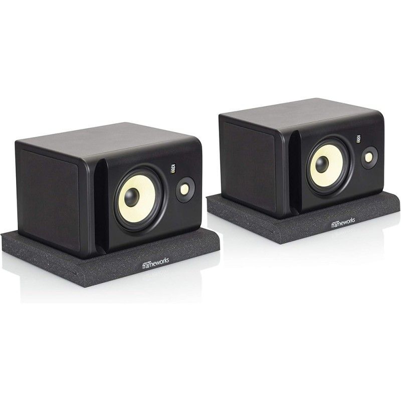 If you haven't heard of decoupling, then today's your lucky day. These super-affordable Gator Frameworks GFW-ISOPAD-LG isolation pads sit between your studio monitors and your desk or monitor stands and absorb all of that extra vibration that would normally transfer from the speaker to whatever it's sitting on. Pretty much everyone with studio monitors uses isolation pads like GFW-ISOPAD-LG pads, and we love the results: accurate and focused bass that clears up the midrange dramatically. And with the removable angled pieces, you can even tilt your monitors to more accurately aim them at your listening position.