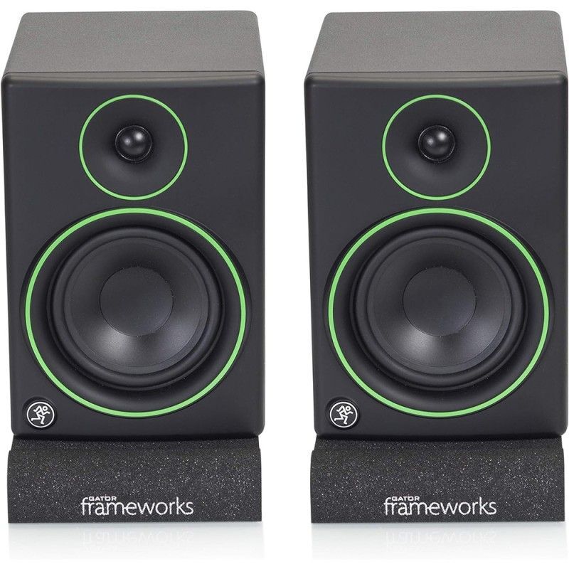 If you haven't heard of decoupling, then today's your lucky day. These super-affordable Gator Frameworks GFW-ISOPAD-SM isolation pads sit between your studio monitors and your desk or monitor stands and absorb all of that extra vibration that would normally transfer from the speaker to whatever it's sitting on. Pretty much everyone at with studio monitors uses isolation pads like GFW-ISOPAD-SM pads, and we love the results: accurate and focused bass that clears up the midrange dramatically. And with the removable angled pieces, you can even tilt your monitors to more accurately aim them at your listening position.