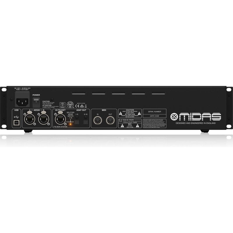 • 16 award-winning Midas PRO microphone preamplifiers with switchable 48 V phantom power