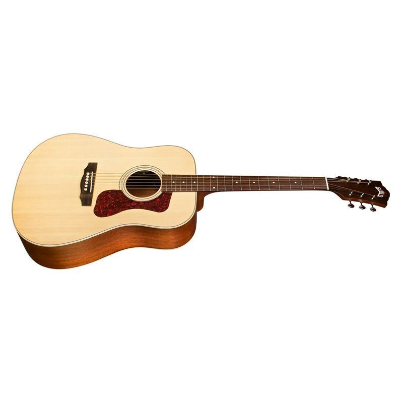 Built with a solid spruce top, mahogany sides, and arched mahogany back, the full-bodied and powerful tone of this Guild dreadnought provides guitarists with a classic acoustic sound and balanced voicing. Guild’s signature arched back design allows for great volume and projection, long sustain, and a lush, full sound. The D-240E features Guild’s Fishman-designed AP-1 electronics, a pau ferro fingerboard and bridge, bone nut and saddle, mother-of-pearl rosette, period-correct tortoiseshell pickguard, and a matte polyurethane finish. Available in Natural.