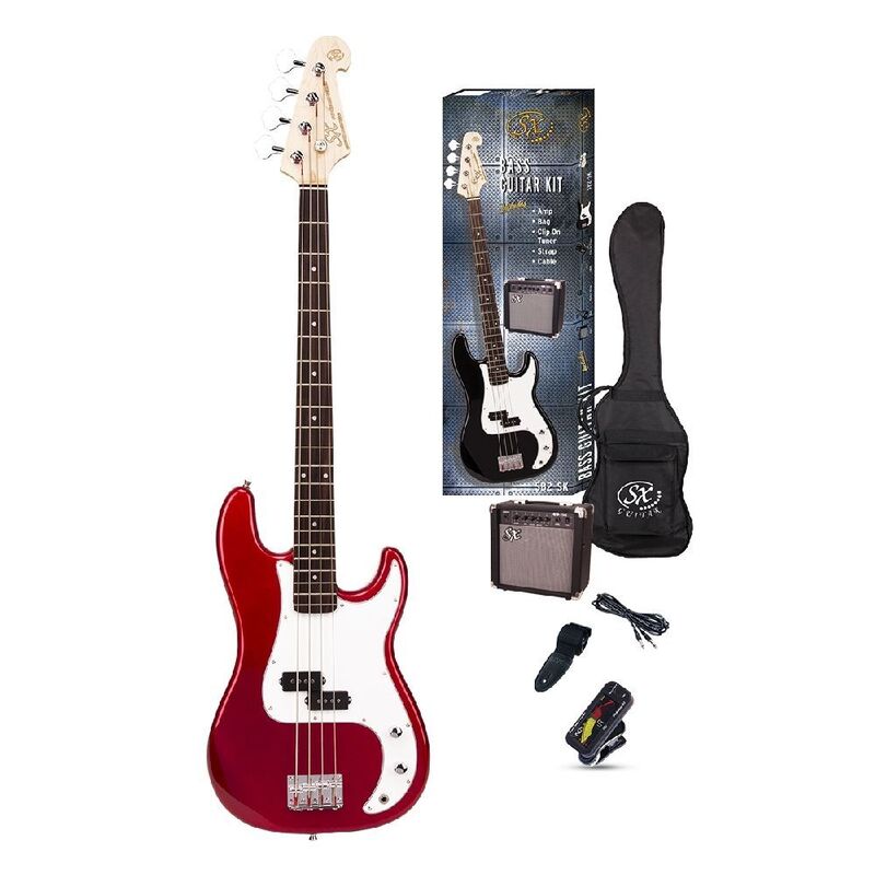 SX Electric Bass Guitar Kit SB2-SK-CAR with Amp / Cable / Tuner / Strap / Bag