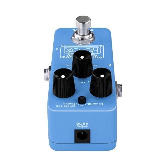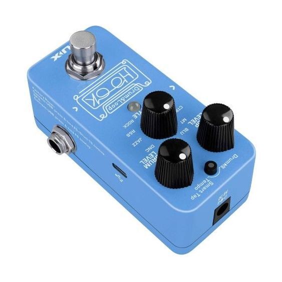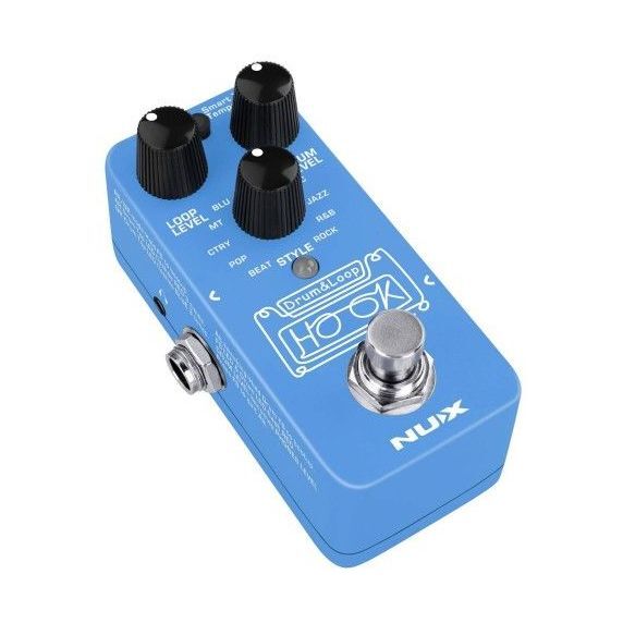 The HOOK Drum & Loop (NDL-3) is a mini looper pedal with auto tempo detection. Simply record a phrase loop, then add a synchronized drum beat. Or you can use the included Smart Tap Tempo and play the drum beat, then start to record the phrase loop. The HOOK is intelligent and simple to operate.