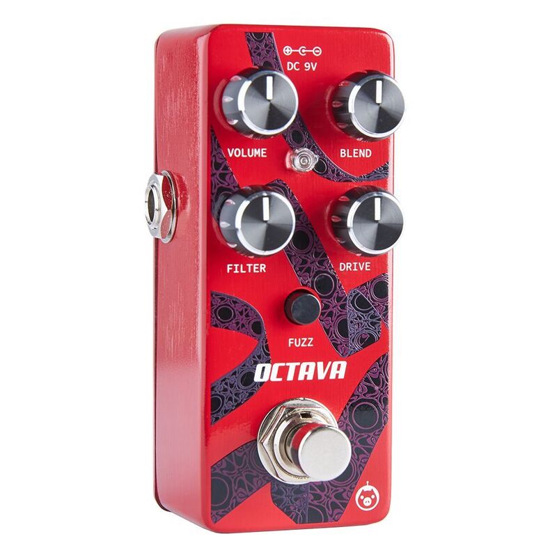 Octava is an all-analog octave fuzz / frequency doubler featuring an on-board low pass Filter control that allows you to achieve singing octave up tones anywhere on the neck, without adjusting your guitar’s tone control. A front-end Drive and gushing Fuzz circuit add signal power and easily convert Octava to shoegazey fuzz pedal capable of producing devastating, full-wave rectified distortion. Use the Blend knob to mix the octave up effect on top of your dialed-in drive.