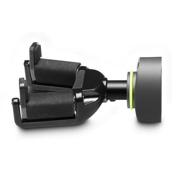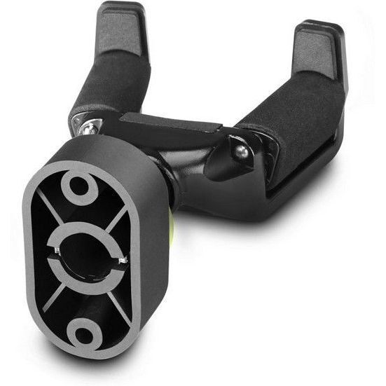 This universal wall mount hanger for acoustic, electric and bass guitars features Gravity’s smart “Neck Hug” technology. It automatically secures the neck in the yoke to prevent falling out. The locking wings open again when the instrument is lifted from the hanger. The yoke is coated with specially formulated rubber that does not mar the finish.
