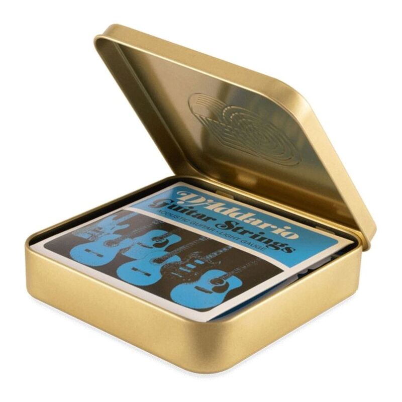 The D'Addario 50th Anniversary String Bundle is a special collectible celebrating a true milestone. This exclusive tin features a set of EXL110 and a set of EJ16, in packaging inspired by the sets' original artwork. This bundle also includes three unique stickers, a poster featuring a D'Addario vintage ad and company timeline, and two 50th Anniversary Celluloid Guitar Picks. The D'Addario 50th Anniversary String Bundle is a perfect keepsake for D'Addario loyalists and guitar enthusiasts who want to own a piece of the brand's history.One set of XL Nickel Wound electric strings.