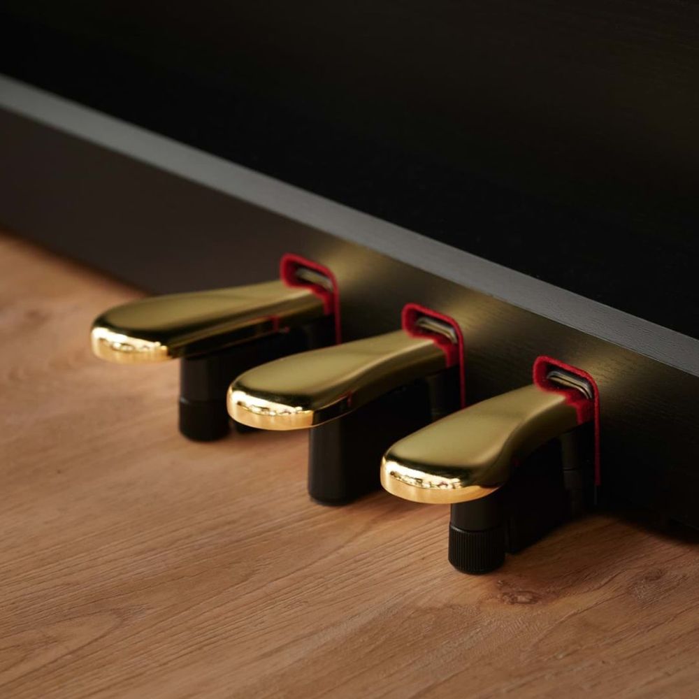 • Three-pedal system designed for precise control, including half-pedaling for expressive performance