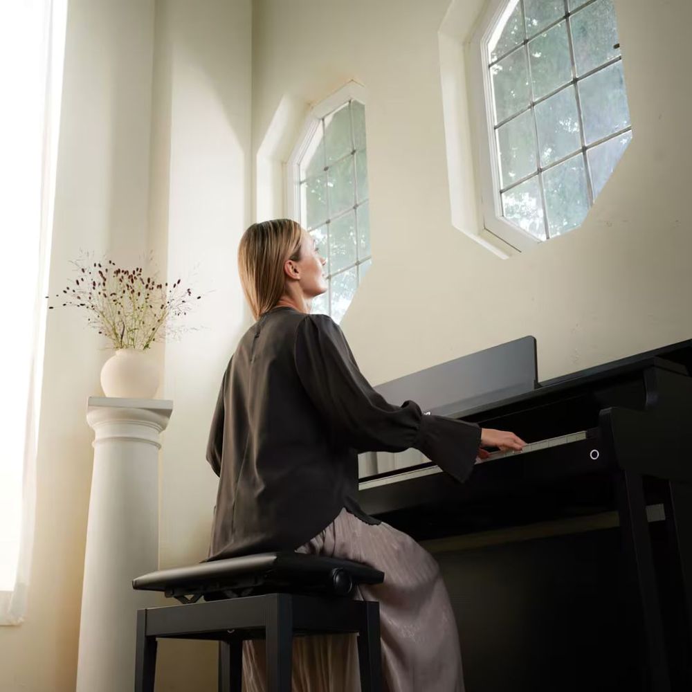 • Smart Hybrid Hammer Action Keyboard with spruce-resin keys and counterweights offers authentic, responsive touch.