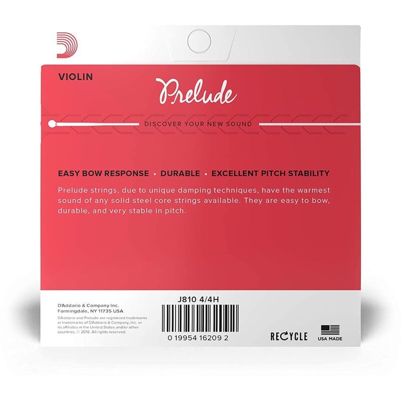 Prelude strings are the educator's preferred choice for student strings due to their unique blend of warm tone, durability, and value. Prelude strings have the warmest sound available in an affordable, solid steel core string design. Unaffected by temperature and humidity changes, they have excellent bow response.