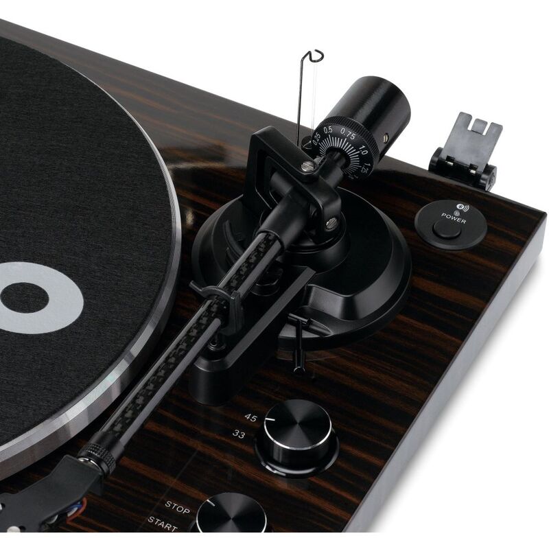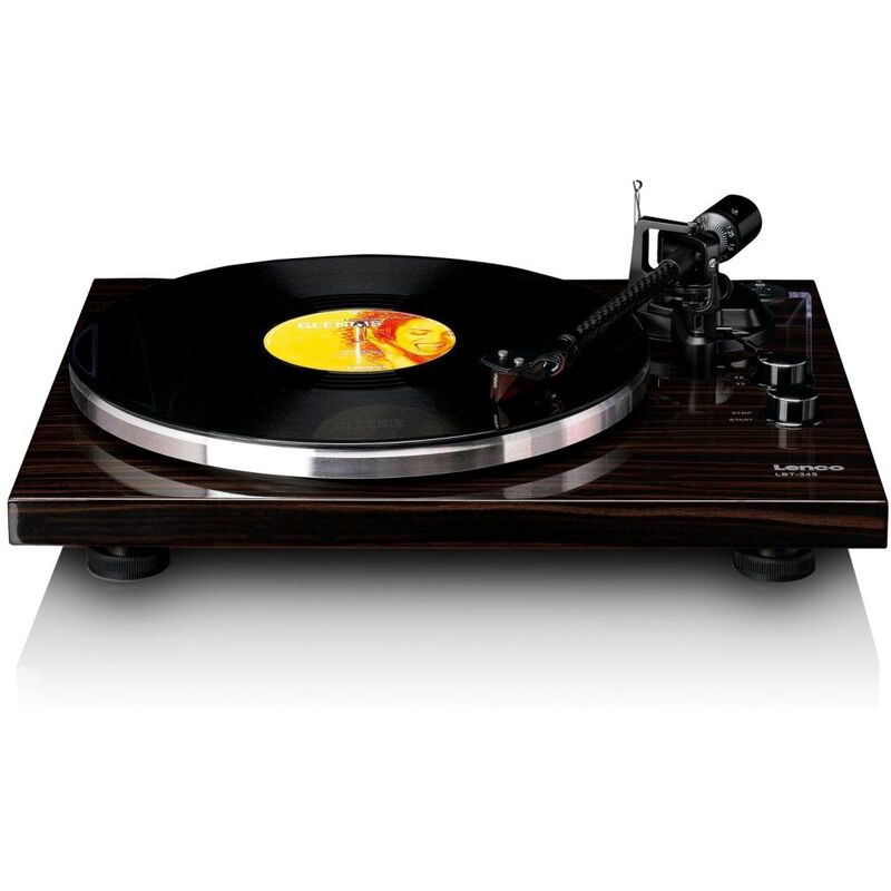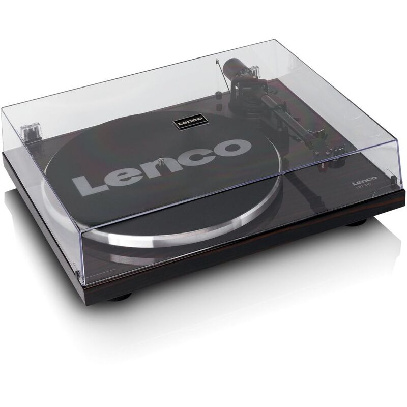 With great pride, Lenco presents the LBT-345WA, a high-end Bluetooth turntable from Lenco's Expertise line featuring a housing in an exclusive walnut color. The turntable's design exudes elegance and style, while the warm tones add a touch of refinement to the overall aesthetic. As a result, the belt-driven LBT-345WA not only guarantees a sophisticated and detailed audio playback but also provides visual delight in any stylish interior setting. The turntable is further defined by the award-winning Ortofon 2M Red cartridge, designed for true enthusiasts, bringing every note to life with precision. What makes the LBT-345WA even more exclusive is the addition of a chrome-plated record stabilizer, among other features such as a metal turntable platter, a carbon fiber tonearm with a counterweight, start-stop operation, a felt slipmat and a detachable dust cover.