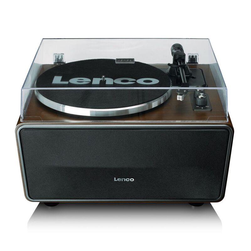 Introducing the Lenco LS-470WA, an all-in-one record player from Lenco's Expertise line with a stunning, robust design in the elegant walnut colour. The LS-470WA is a record player with built-in speakers, belt drive, and Bluetooth®, featuring a high-quality Audio Technica cartridge. The detachable dust cover protects your record player from dust, while the unique design and elegant dark wood finish add a touch of class to the immediate surroundings of the record player.
