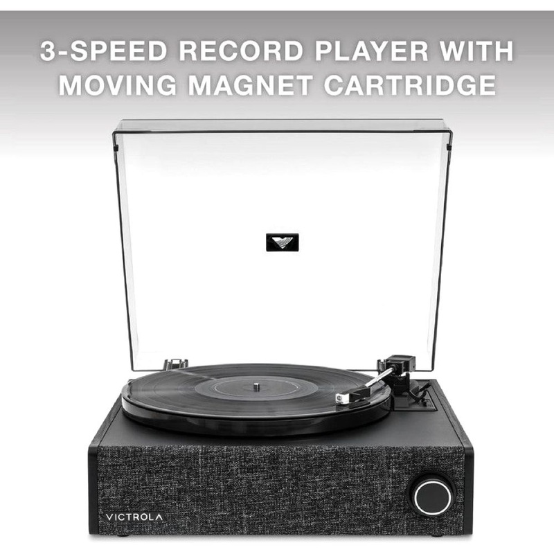 Victrola Eastwood LP VTA-78 Bluetooth Record Player Discover the joy of vinyl with the Victrola Eastwood LP VTA-78 Bluetooth Record Player, where timeless music meets modern technology. Featuring an anti-skip floating speaker system, this turntable delivers room-filling stereo sound and enhanced bass, ensuring a listening experience free from vibrations and skipping. The high-fidelity Audio Technica ATN3600L moving magnet cartridge enhances clarity and richness, bringing out the intricate details of your favorite tracks. Embrace the convenience of wireless streaming with VINYLSTREAM Bluetooth output, allowing you to connect effortlessly to your Bluetooth speakers or headphones.