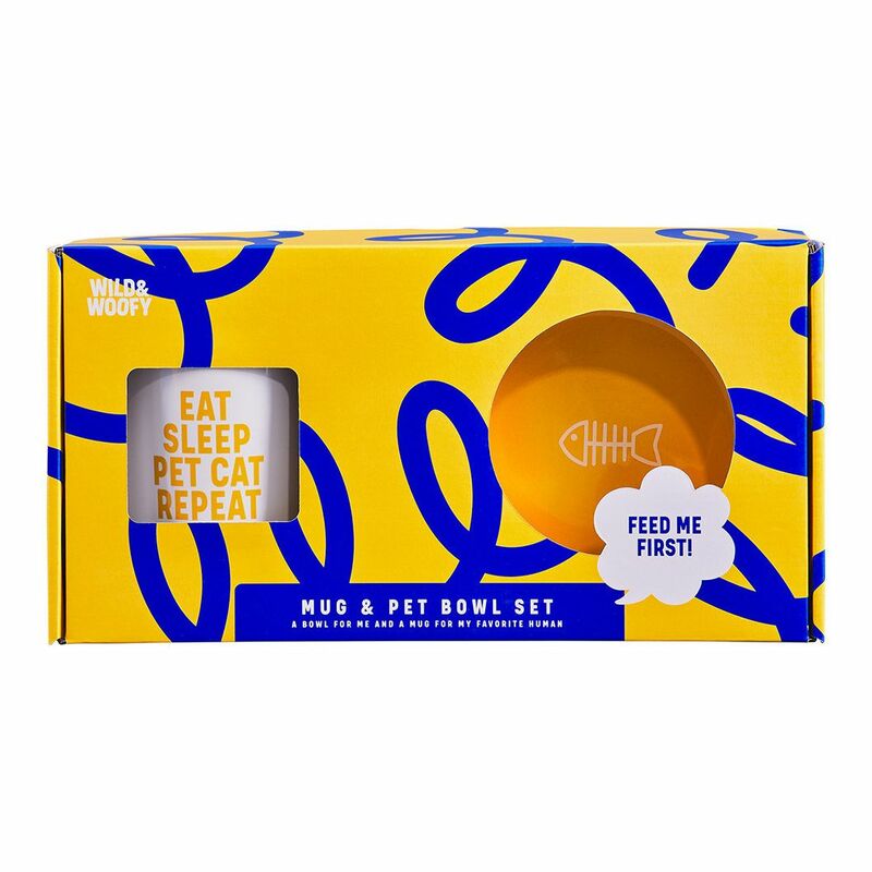 Wild & Woofy Mug And Pet Bowl Set Cat