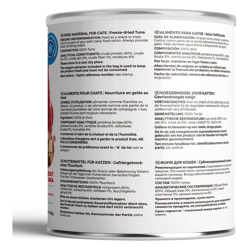 Freeze-dried tuna for cats is a top-quality protein source crafted from real tuna. Through a meticulous process of freezing the tuna at low temperatures and gently removing moisture, its natural flavors, nutrients, and texture are impeccably preserved. This choice is highly favored by pet owners seeking to offer their feline companions a wholesome, minimally processed treat or meal.