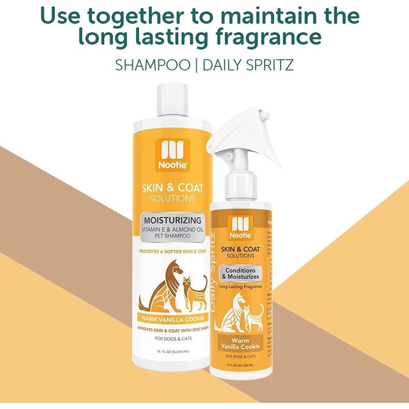 Nootie's Daily Spritz Warm Vanilla Cookie - The exhilarating aroma of our Warm Vanilla Cookie fragrance will keep your dog smelling fresh and clean between baths while conditioning the skin and coat. Nootie's Daily Spritz is made with natural ingredients and is soap and paraben free. It's long lasting. and made with a gentle, conditioning formula that contains no sulfates or harsh chemicals.- Long lasting fragrance- Made with natural ingredients- Soap & Paraben Free- No sulfates or harsh chemicals- Safe to use along with topical flea & tick productsIngredientsPurified Water, SDA 40B Alcohol, Nonoxynol 9, Polyquaterinium- 7 (conditioner), Glycerin (moisturizer), Kathon CG (preservative), infused with essence of Warm Vanilla Cookie