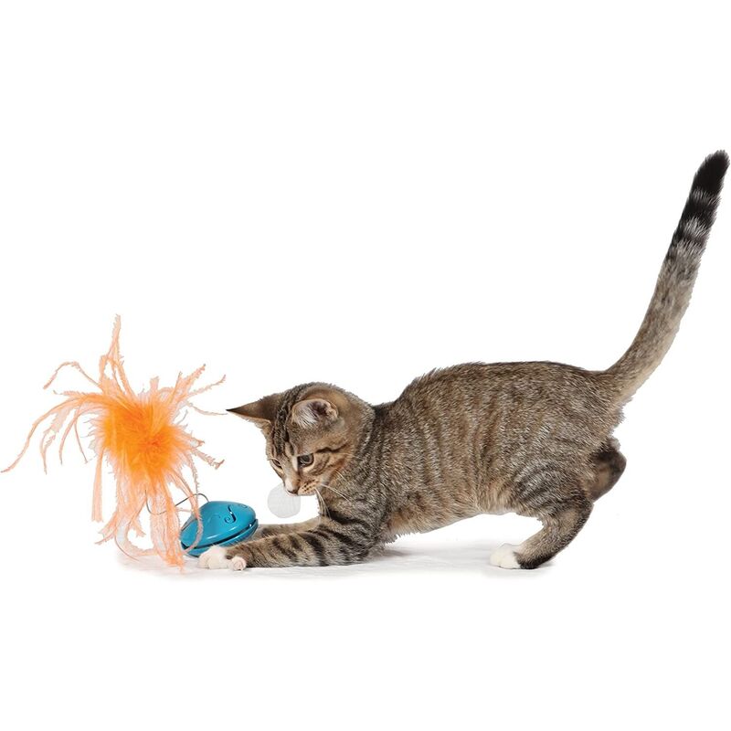 The Twist 'n Treat Teaser cat toy makes playtime more fun! The added feather topper will entice your cat even more. It moves with a funky bobble and pops treats out as your cat plays. Twist apart the two halves of the toy and fill the center with your cat's favorite treat or dry food, then watch the fun! Tighten the halves to give your cat a challenge. Use it to treat your cat, or use it to feed meals for an easy weight loss solution. This deluxe version of the Twist 'n Treat is perfect for the cat who loves the standard Twist 'n Treat and is ready to have even more fun, for the finicky cat who needs incentives to play with a toy, and for the spoiled cat who gets the best of everything. In other wordsit's great for every cat!Features Treat or food-dispensing toy Attached feather teaser Encourages playtime Helps with your cat's weight loss Adjustable openings to increase or decrease the challenge for your cat Detailed instructions included Dishwasher safe, top rack onlyMore InformationThe Twist 'n Treat twists apart to let you put small treats or dry food inside. You can adjust how easily the treats are dispensed. Start with an easy setting, allowing treats to come out quickly, so your cat associates the toy with a food reward. Once your cat has the hang of it, you can increase the level of difficulty by making the openings smaller. It will take your cat longer to get the reward, thus encouraging longer play time. This appeals to your cat's prey drive; your cat will feel like she's catching and eating her prey every time she plays.