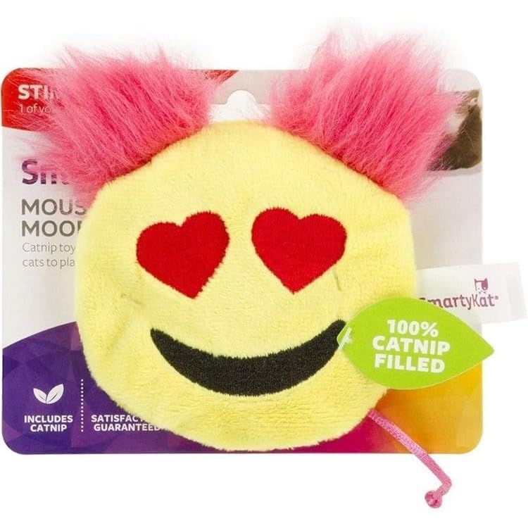 SmartyKat Mouse Moods Emoji catnip filled cat toys are fun for the whole family! How is kitty feeling today, which emoji will be her favorite? Our 6 six emoji cat toys will be endless entertainment. Heart Eyes, Wink Tongue, 2 Eye Roll, Laugh Tears, Poop and Kiss, in each PDQ. All Emoji toys are 100% catnip filled with our pure and potent catnip. Most cats respond to catnip with a burst of energetic activity followed by a purrfectly calm mellow period. Our catnip is produced without chemicals or pesticides and is grown on our own catnip farms.