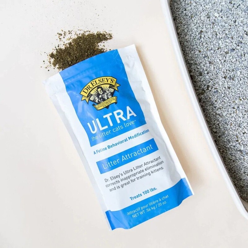 Mix 1 4 cup with 20-25 lbs of Dr. Elsey's Ultra Unscented Clumping Clay Litter in a new open litter box. Add 1 8 cup Litter Attractant whenever you add more litter. Do not use with paper, wheat, corn, conventional, pine, perfumed, cedar, or litters containing baking soda or other deodorizers since they may mask the smell of the attractant."