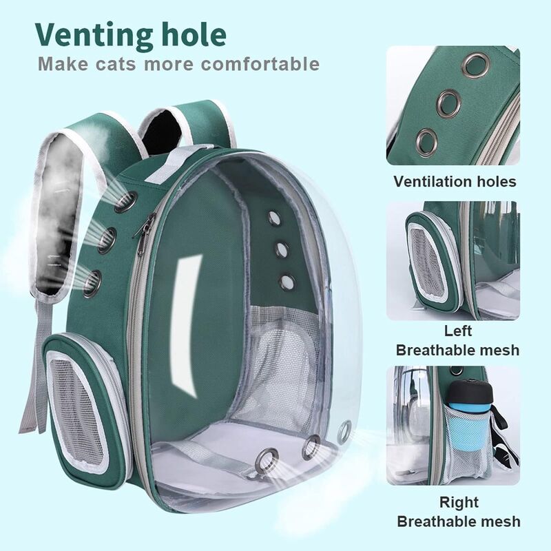 SUFFICIENT SPACE: this bubble backpack cat carrier is made of eco-friendly PVC and high-density anti-scratch fabric. 12" x 11" x 16.5" (Lx W x H), 2.7 pounds. Highly recommended to bring pets under 14.5 pounds. Ideal backpack for cats for traveling, walking, hiking, and hanging out.