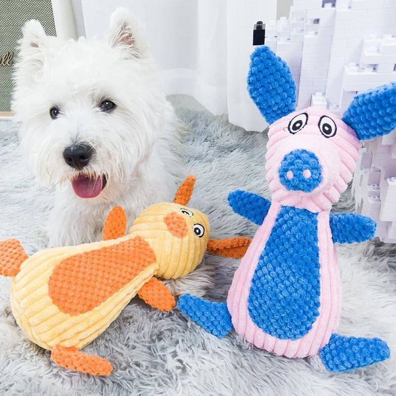 A Plush Pet Squeakz dog toy is a soft and cuddly toy designed for dogs. It is typically made of plush materials that are gentle on your dog's mouth. The toy features an internal squeaker that produces an enticing squeaking sound when your dog interacts with it. This interactive element can stimulate your dog's play instincts and keep them engaged and entertained. Plush Pet Squeakz dog toys often come in various shapes and sizes, making them suitable for dogs of different breeds and sizes. Always supervise your dog when playing with squeaky toys to ensure their safety.