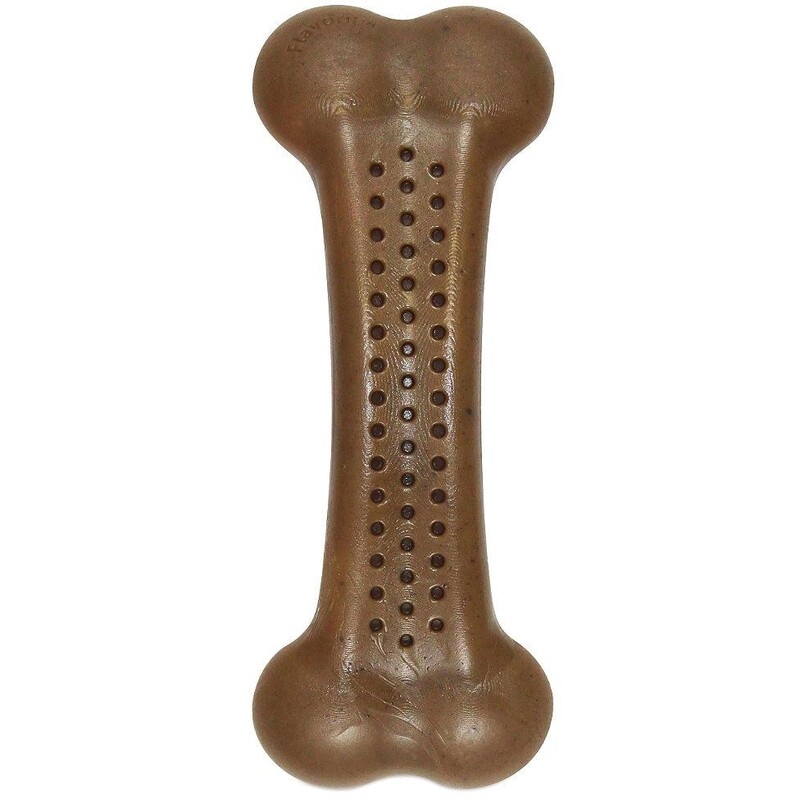 Pet Qwerks Flavorit BarkBone Mesquite Chicken Flavor Dog Chew Toy is an artisan nylon chicken-flavor-infused BarkBone for aggressive chewers. This rich, flavor-infused nylon bone has tiny treat cells molded in both sides that can be filled with peanut butter, cheese, cream cheese, or any other spreadable treat your dog prefers. Once your dog is done chewing, just run it through the top rack of the dishwasher for a thorough cleaning and it's ready for the next round of chewing. Or you can use a brush to clean up the leftover food. The BarkBones are hefty in size and curved, so they?re easier for your dog to pick up and hold when chewing. All BarkBone components are sourced in the USA! non-allergenic, FDA-compliant and safe for your dog!