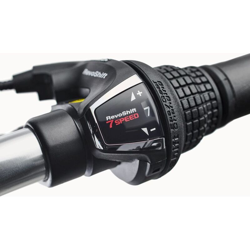 - The Shimano Revo shifter delivers smooth gear shifting, helping to climb hills easily. Brakes control deceleration for swift stopping, while 26-inch Bontrager tires roll smoothly turning the ride into an unforgettable experience