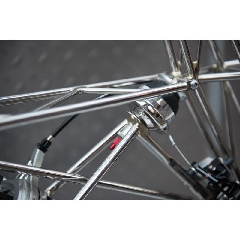 For those who like driving... quickly. Moulton NS Speed boasts durable tyres absorbing the roughness of the road, increasing comfort and speed. The bicycle looks fragile and almost transparent, but its capabbilities see almost no limits. Difficulties will not surprise it, but you will be amazed by its excellent driving properties and refined appearance.