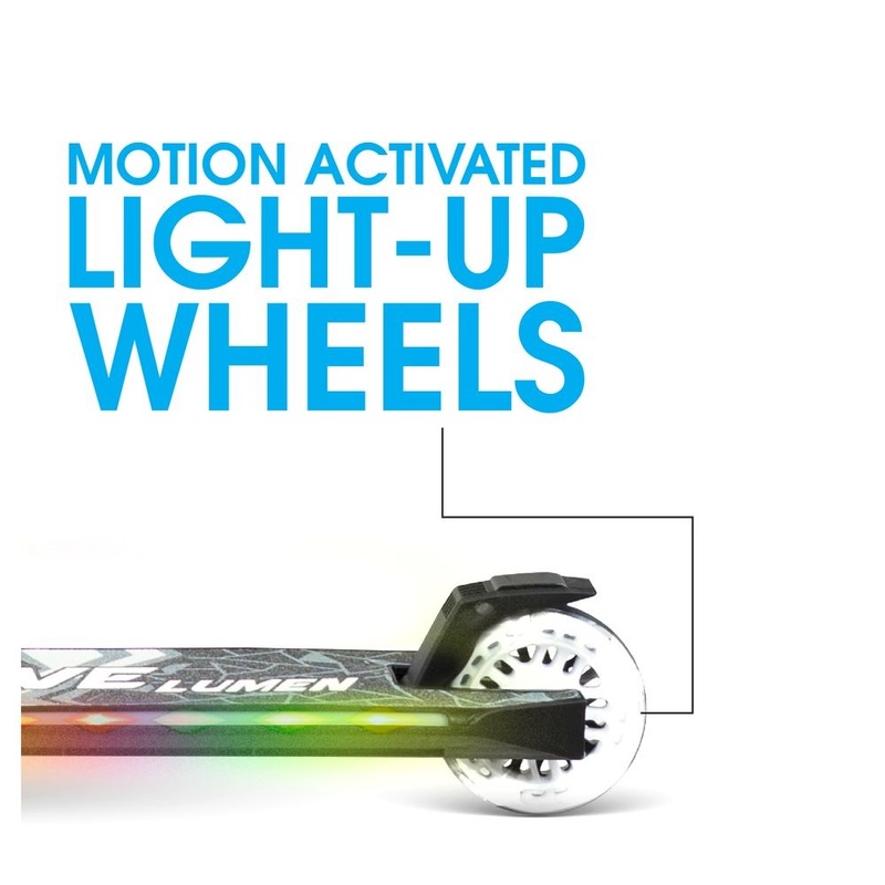 The Madd Gear Carve Lumen Light-Up Folding Scooter features an amazing array of LED lights with a whopping 20 different selectable functions! The fun is endless as you light-up your path in any color or flashing combination you can dream of.