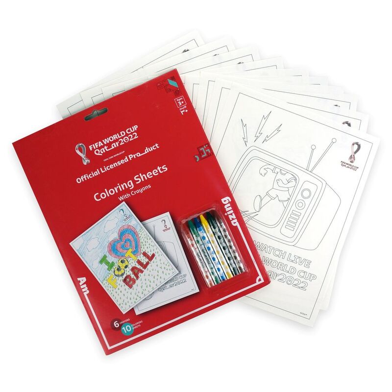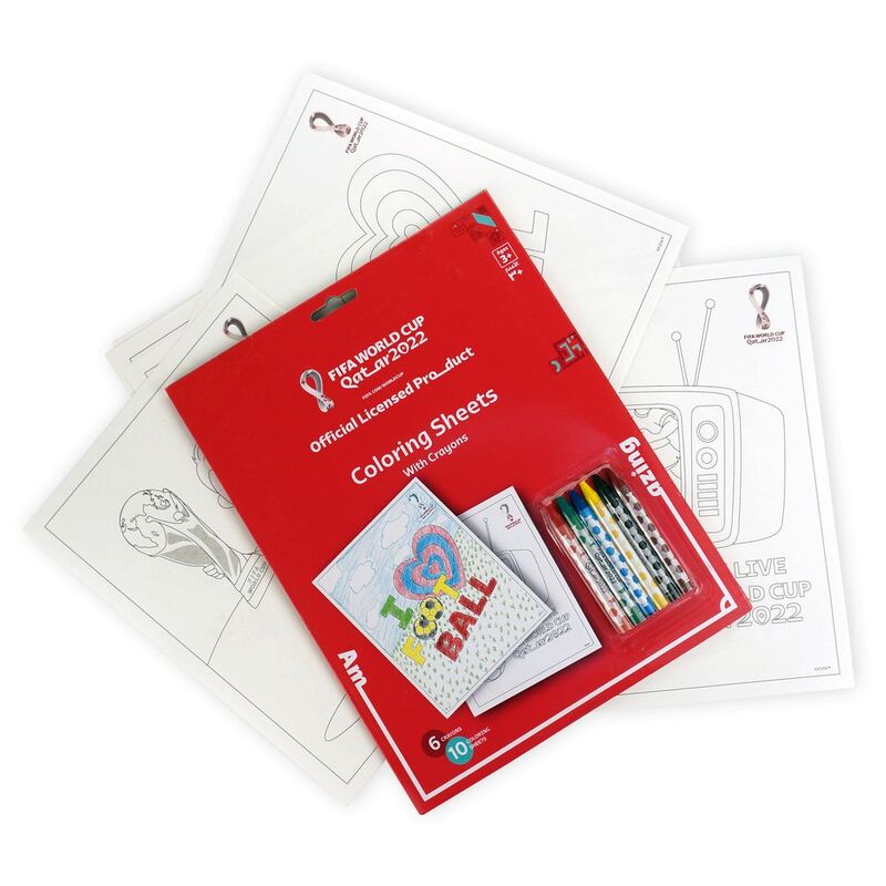 FIFA World Cup Qatar 2022 Coloring Sheets with Crayons (10 Sheets & 6 Crayons)