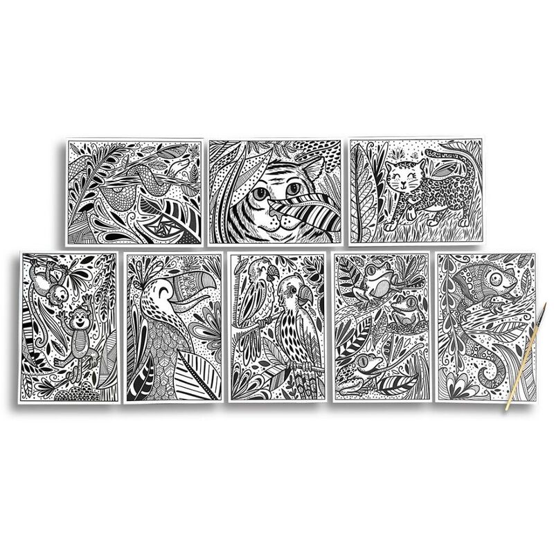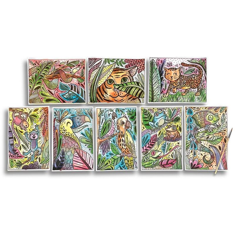 One thing the jungle is not, is black and white! Watch it come to life with just a brush of water when you use these hidden colors water reveal sheets. Eight different designs are included along with a brush. Just add water to begin your creative trek through this delightful jungle!
