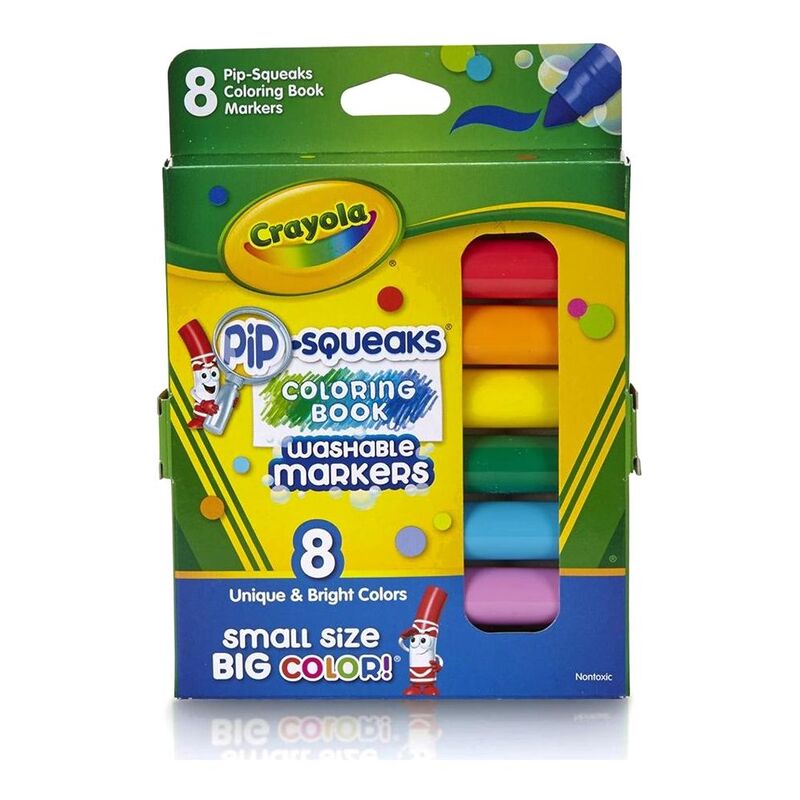 Pip-Squeaks have the same high-quality washable ink as regular broad line Crayola markers, but with a more kid-friendly length. The 'Pip-Squeaks' name describes the markers' shorter size, which is easier for younger kids to hold. Activity time is that much more enjoyable with a smaller marker barrel that fits more comfortably in little hands.