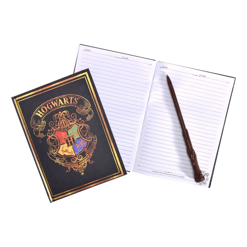 Casebound Notebook with crest detail front & back, Tooled Harry Potter Wand Pen, packaged in an eco-Friendly Card Box.