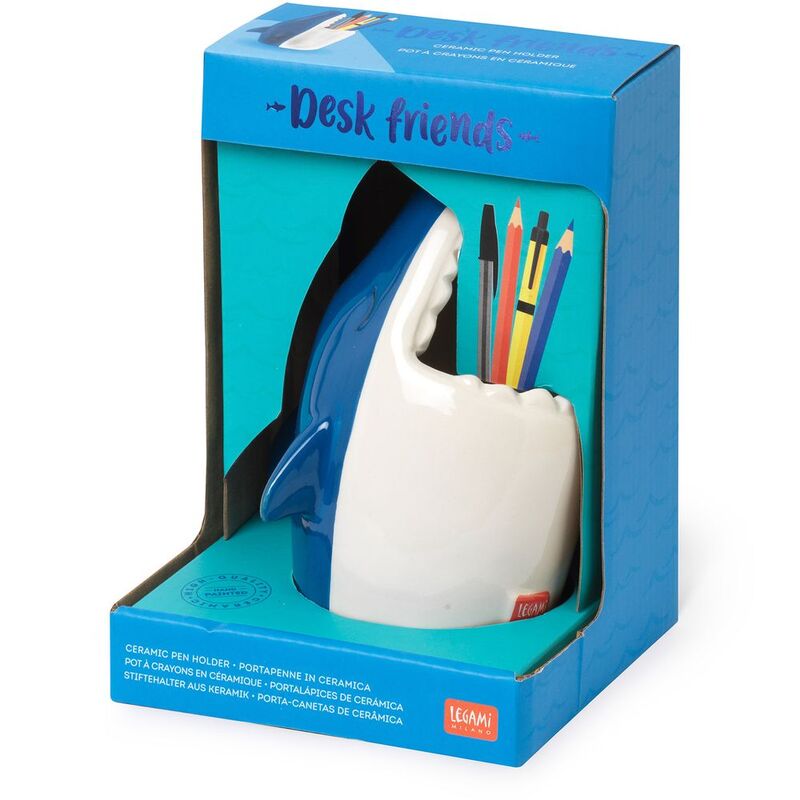 Explore the deep blue without leaving your desk with the Legami Desk Friends Ceramic Pen Holder - Shark. This stylish accessory will keep your pens organised and keep you company as you plan your very own shark attack.