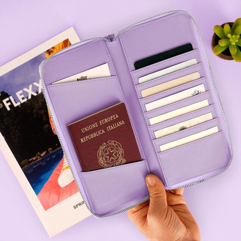 Do you always forget where you've put your documents when you need to show them at check-in? Panic no longer with Legami's Travel Organiser Rfid Blocking. It has 4 large pockets for boarding passes and passport, plus 7 smaller pockets for credit cards and tickets. Perfect for even the most cautious men and women travellers - RFID protection safeguards your documents against identity theft.