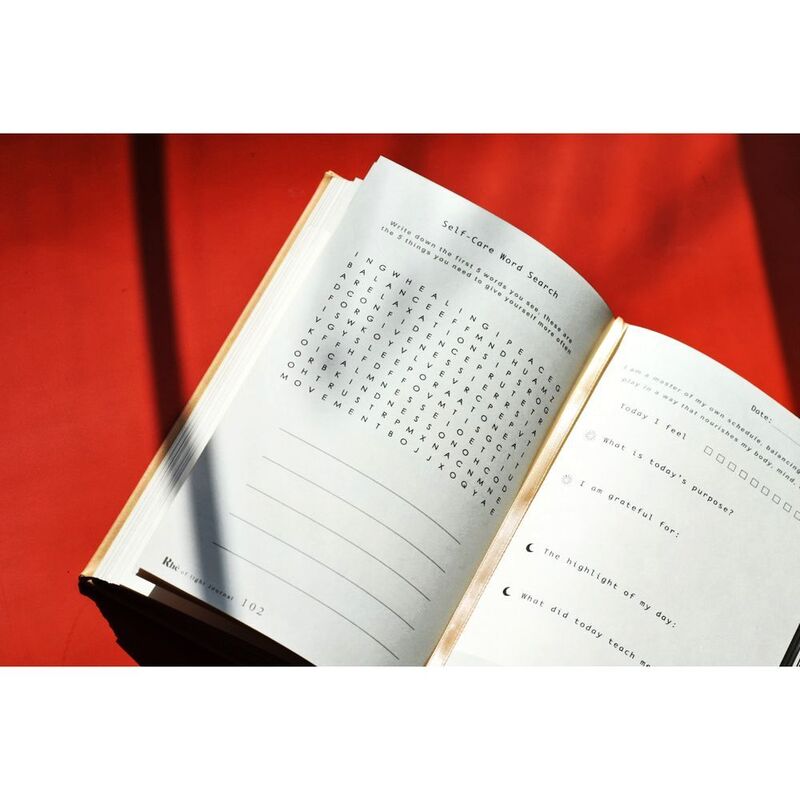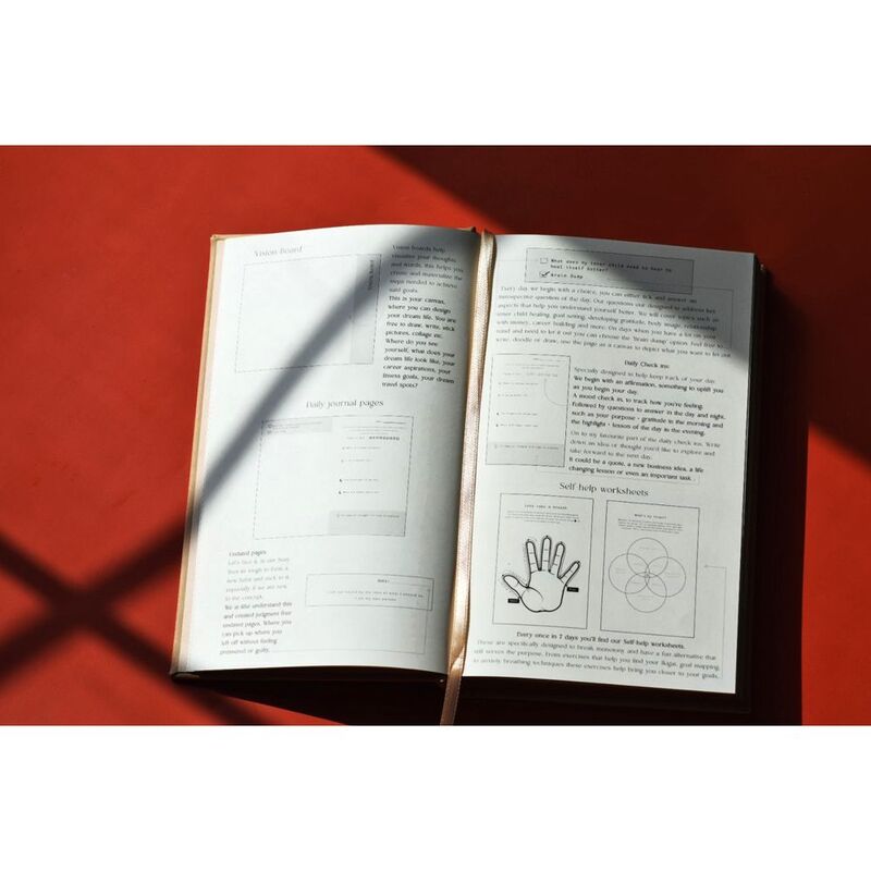 Daily guided self-help wellness journal, addressing topics such as inner child healing, goal setting, gratitude, body positivity, manifestation, money mindset, career building, and more.