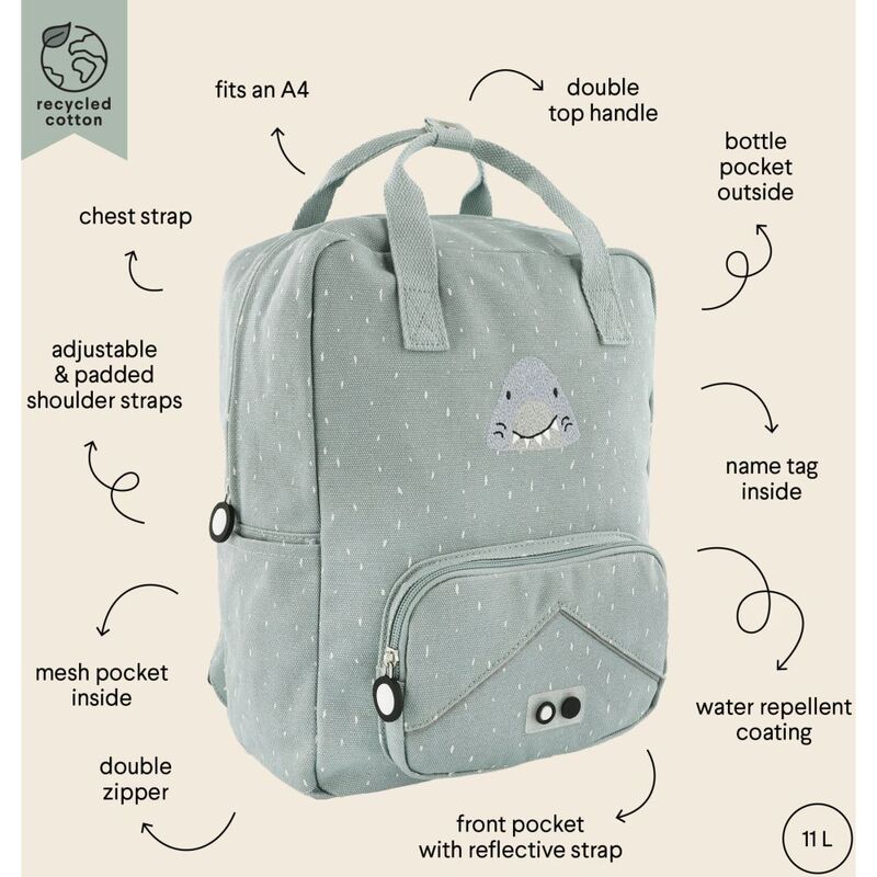 Trixie Kids Backpack Large - Mr. Shark Grey Blue