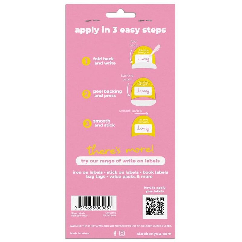 Stuck on You Write on Shoe Labels - Rainbow Love (20 Pack)