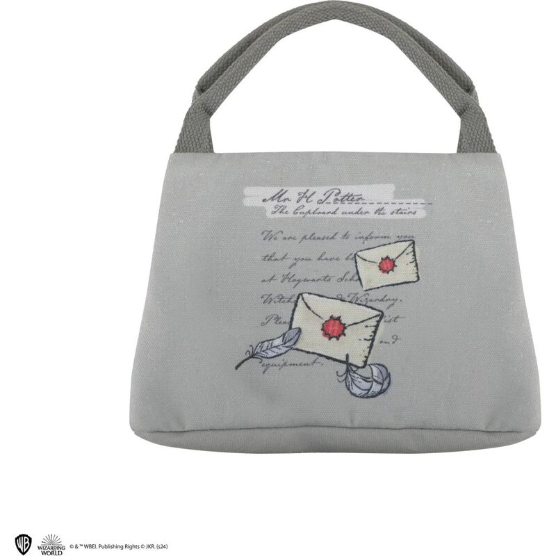 Let your child's imagination take flight with our enchanting thermal lunch bag. It comes in a light grey shade. Hedwig takes Centre stage, wings spread wide, as it holds Harry's iconic Hogwarts acceptance letter. If you flip the bag around, you will find two more acceptance letters, elegantly written in cursive.