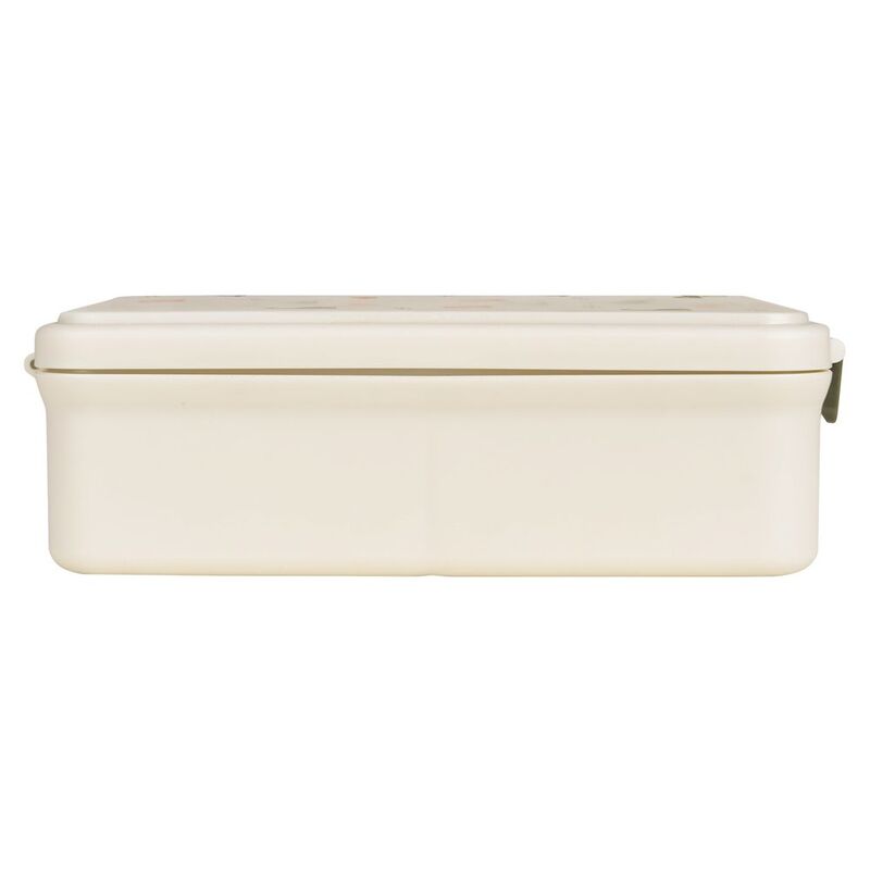 - Stores food in 4 separate compartments, in bento lunchbox style.