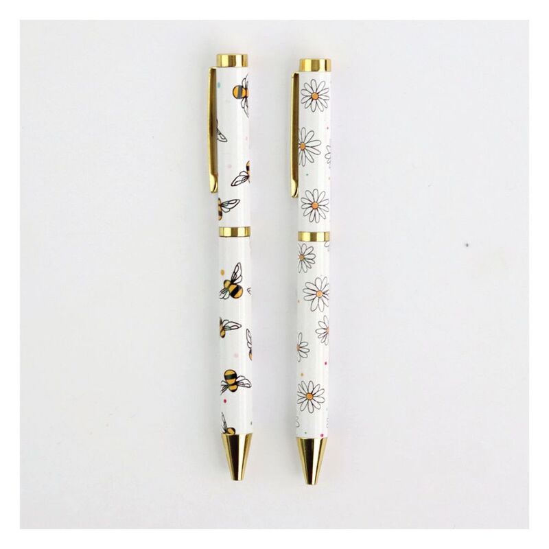Refillable Ballpoint Pen Set with Bees Design and Twist opening from Belly Button