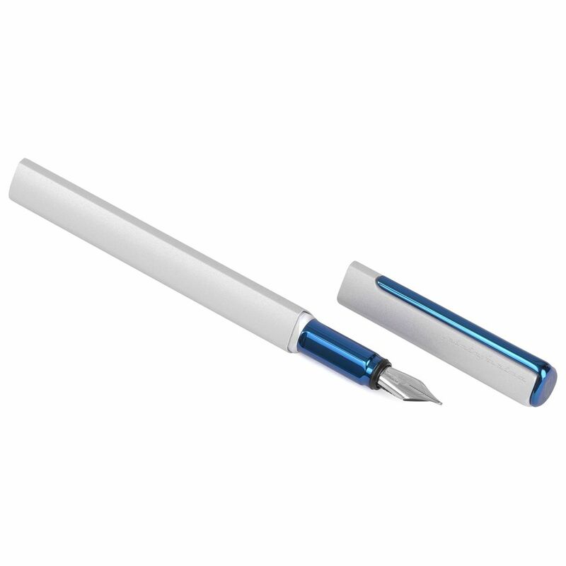 Pininfarina Segno PF One Fountain Pen Blue Silver/Nib Medium - Schmidt K6 Converter Black Ink