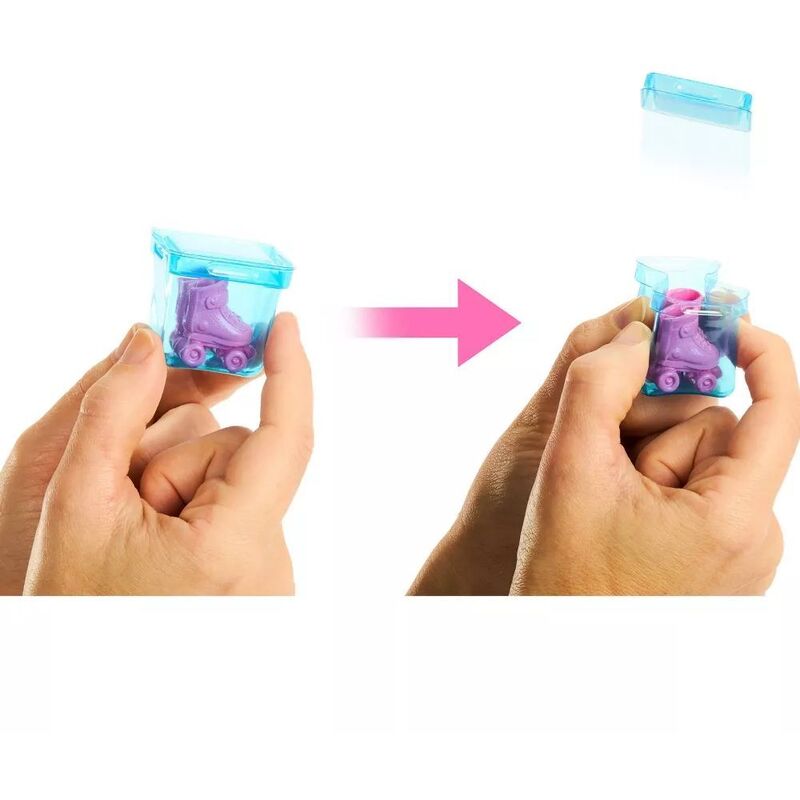 • Continue to unbox and find a small, scented doll with colorful hair, 2 mystery bags and an ice cube that really 'pops' open to reveal a pair of roller skates use the cube for storage or repeat reveals!