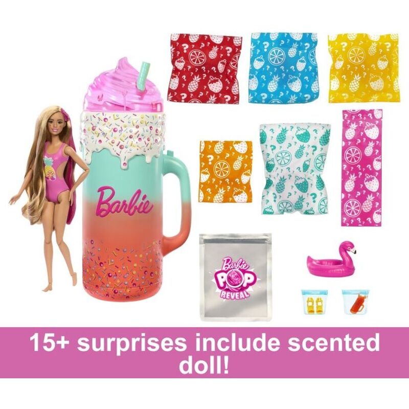 - With 15+ surprises in one sweet gift set, Barbie Pop Reveal Rise and Surprise doll and accessories deliver a sensory unboxing experience with fruit-themed fun!
