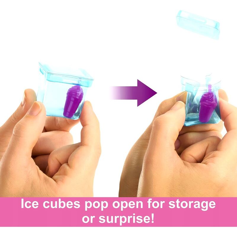 - Discover additional pieces inside the ice cubes that really 'pop' open, like a squishy mini-drink and roller-skates for Barbie doll -- use for storage or repeat reveals!