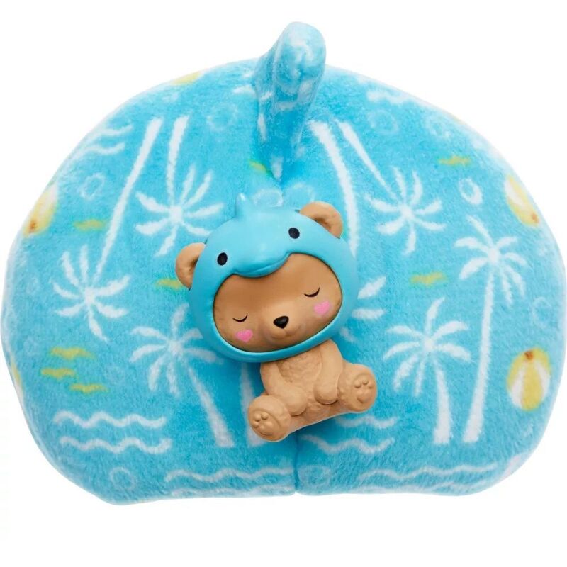 - Which doll will you reveal? Unbox to find an adorable teddy bear wearing a plush dolphin costume!