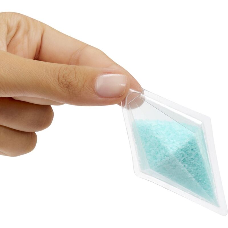 To customize your fairy wings, lay the wings flat on the included playmat and spread two colors of fairy crystal mix into the open sections of the wings to create your desired pattern. Ready for the magic to happen? Use the adorable heart pipette to drop water over the fairy dust to set your beautiful design. When you’re done, wait two minutes for the crystals to dry before moving on to the other side. When both wings are fully set, your fairy is ready for you to clip on her sparkling new wings!