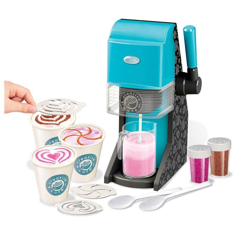 Create the cafe style beverages of your dreams with this Shimmer N Sparkle barista bar! Package includes 4 recipe & tip cards, 2 shaker bottles, 4 paper cups, 1 chocolate & 1 strawberry flavor mix-0.7 Oz(20g) each, 1 frothing pitcher, 1 frothing unit, and 3 stencils. Suitable for ages 8 and up.