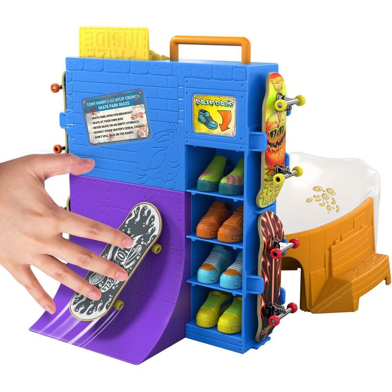 - Perform awesome fingerboard tricks on the Hot Wheels Skate™ Tony Hawk Cereal Skate Bowl set!