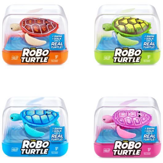 Robo Turtle Robotic Swimming Turtle by ZURUPack Inclusion: 1 x Robo Turtle; 1 x Instruction ManualZURU Robo Turtle: Drop your Robo Turtle in water and watch it come to life with ZURU’s advanced water activated technology!Walk and Swim: These Robo Turtles can take on land and sea for the ultimate Robo adventures!Swim in 5 Directions: Robo Turtles can swim in 5 different direction.